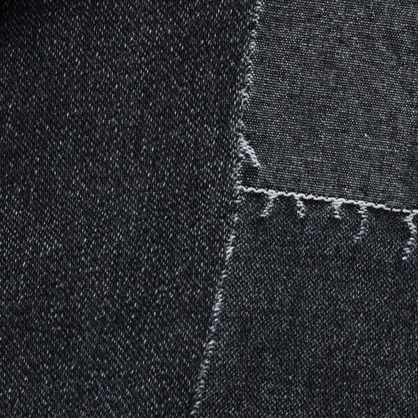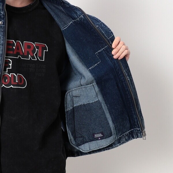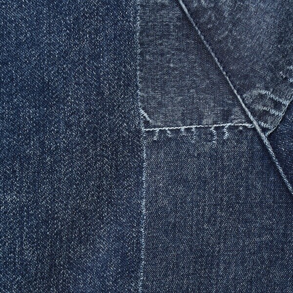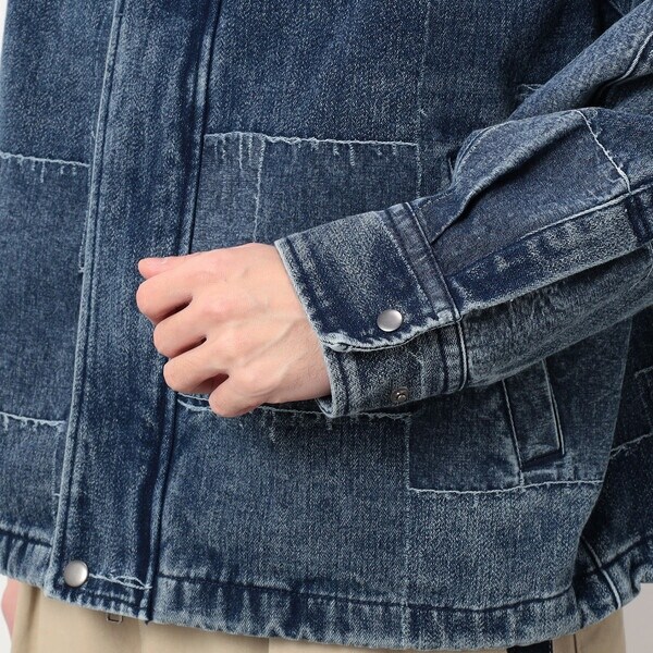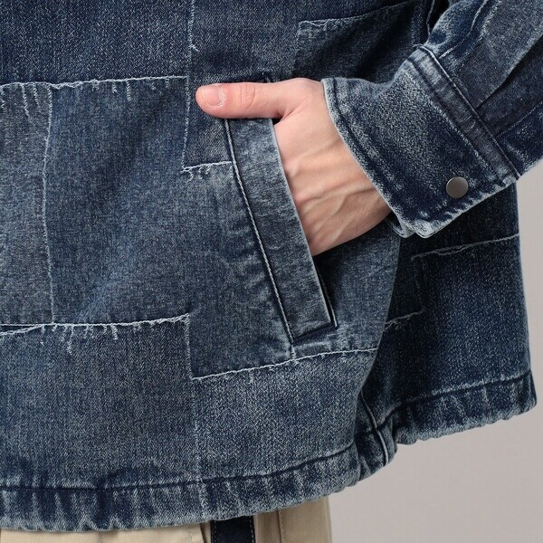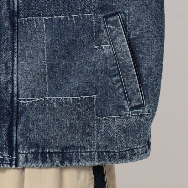 パッチワーク風のデニムに、ケミカルウォッシュをかけてヴィンテージ感漂う雰囲気に仕上げています。