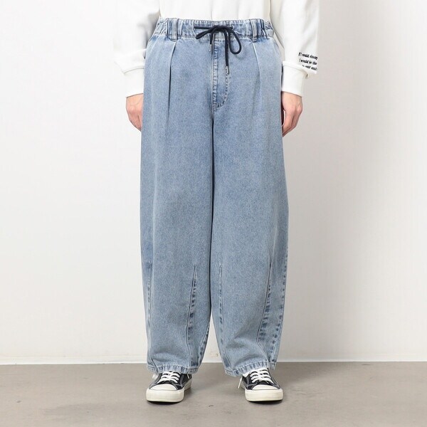 硫化染めデニム/インディゴデニムワイドテーパードパンツ
