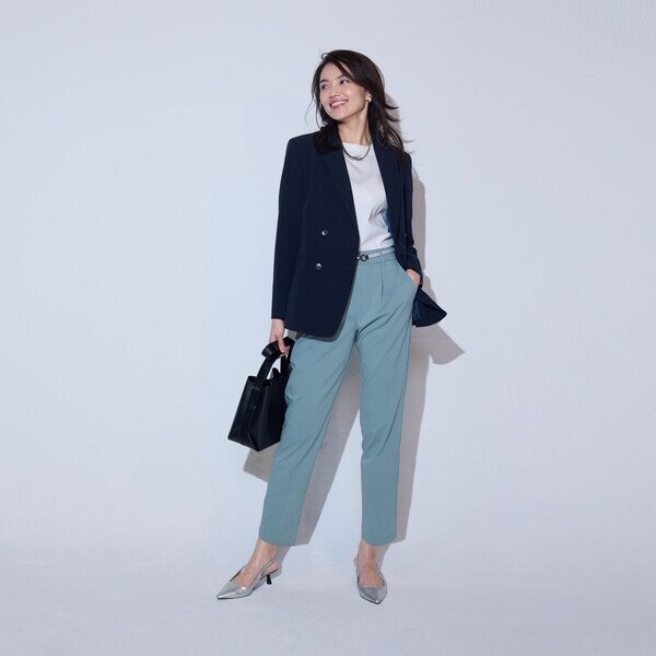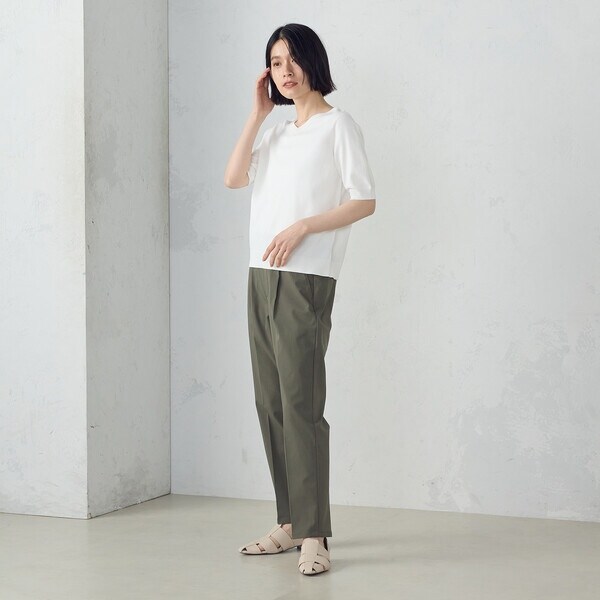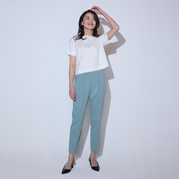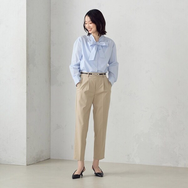 【美しいベーシックパンツ】ストレッチテーパードパンツ