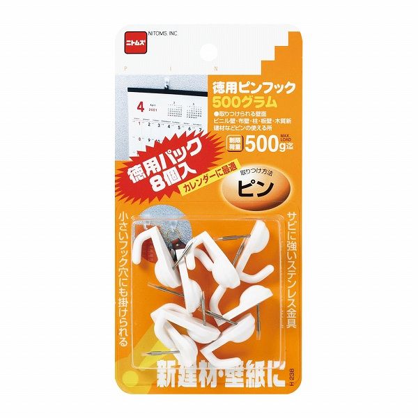 ニトムズ(Nitoms) 徳用ピンフック 入数:1セット(8個入) H238(ZFT0101) ピンフック フックピン フック 掛ける 引っ掛け 画びょう 画鋲 ピン 押しピン カレンダー 小物 石膏ボード