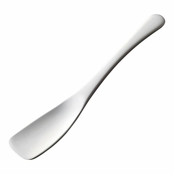 アルミ製のため、一般的なステンレス製スプーンに比べ熱伝導率がよく、固いアイスクリームも伝わる体温で溶かすことができます。また先端部は、カップの底まですくいやすいよう平らになっているので、固いアイスでもしっかりとたっぷりすくうことができます。