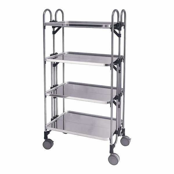 トクヤマ アボジワゴン 4段 折りたたみ式 KEAM-4(HAB1102) サービスワゴン キッチンカート キッチンワゴン カート ワゴン サービステーブル キャスター 車輪 ステンレス 折り畳み 折りたたみ
