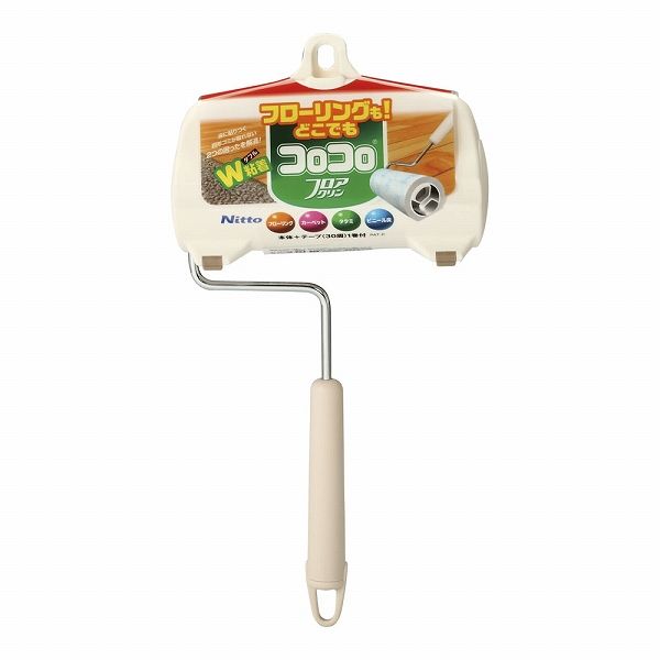 フローリングをはじめ、カーペット、畳、ビニール床など、どんな床でも使えるコロコロです。フローリングでも床に貼りつかない弱粘着とゴミをしっかりキャッチする強粘着のW粘着を採用しています。