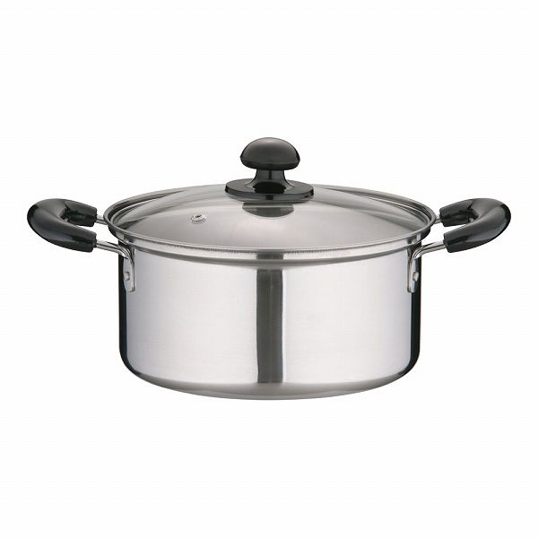 クレール 両手鍋 20cm AKL4701 実用鍋 料理鍋 鍋 ステンレス鍋 ステンレス ガラス蓋 蓋 ふた フタ IH IH対応