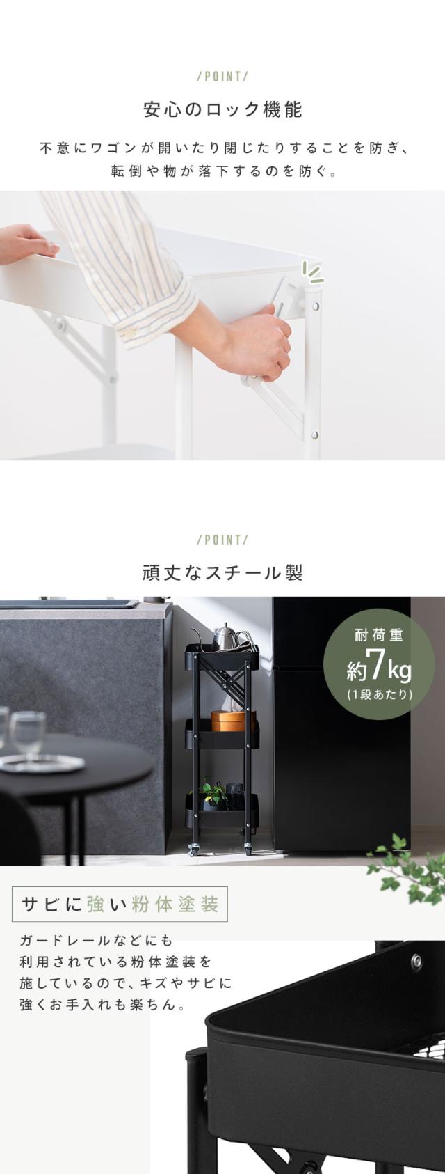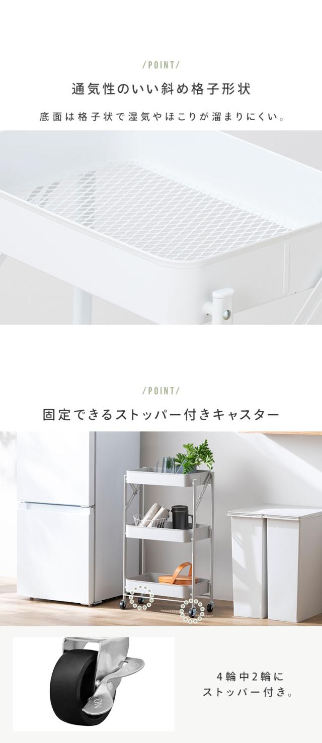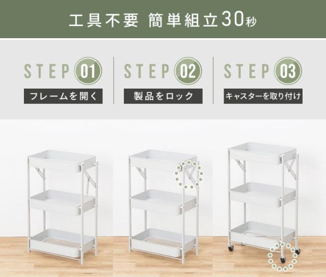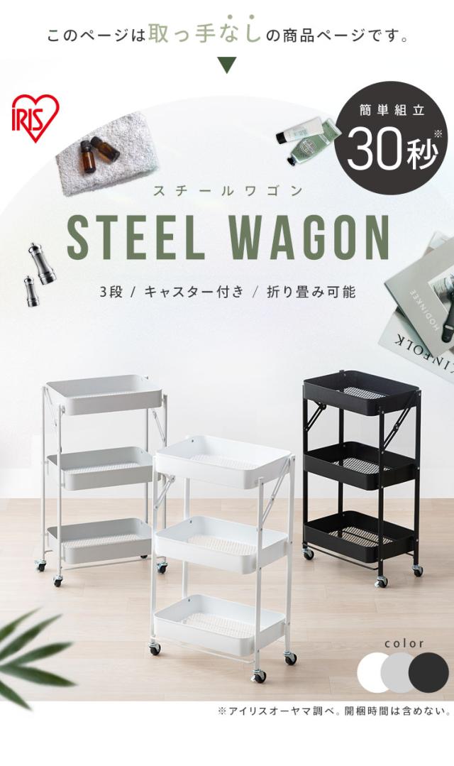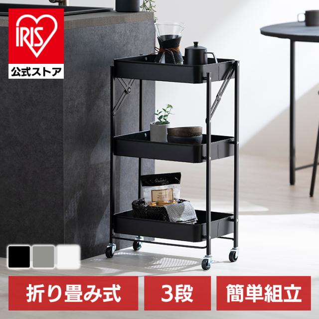 (検索用:キッチンワゴン・キャスター付き・3段・スリム・折りたたみ・キャスター付き・ワゴン・ストッパー付き・スチールワゴン・北欧・組立簡単・収納・4967576743358・4967576743365・4967576743372・アイリスオーヤマ)