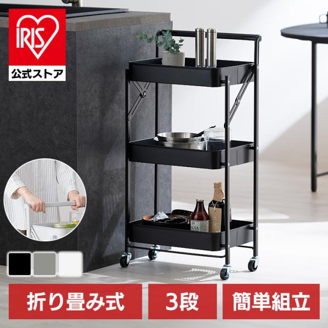 (検索用:キッチンワゴン・キャスター付き・3段・スリム・折りたたみ・取手付き・キャスター付き・ワゴン・ストッパー付き・スチールワゴン・北欧・組立簡単・収納・4967576743389・4967576743396・4967576743402・アイリスオーヤマ)