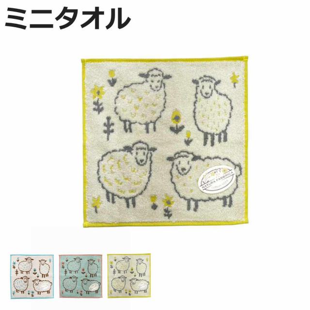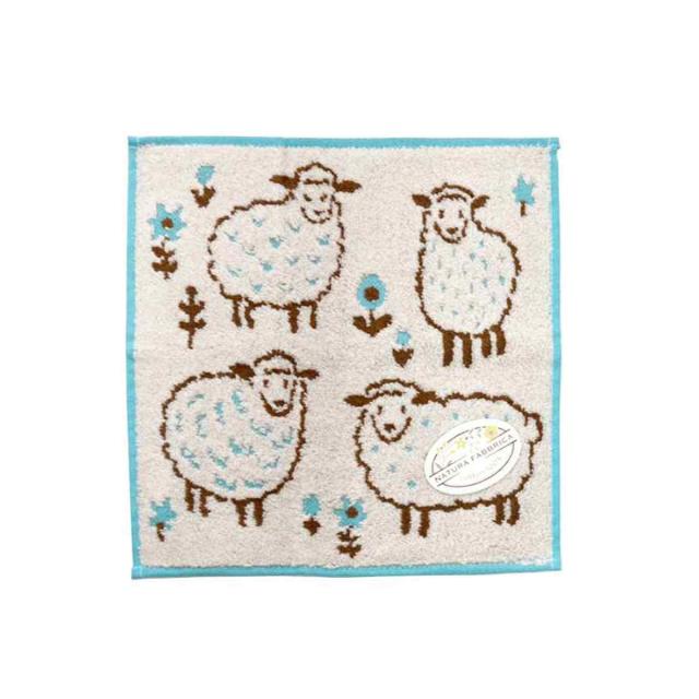 羊のデザインがかわいいミニタオル 25×25cm