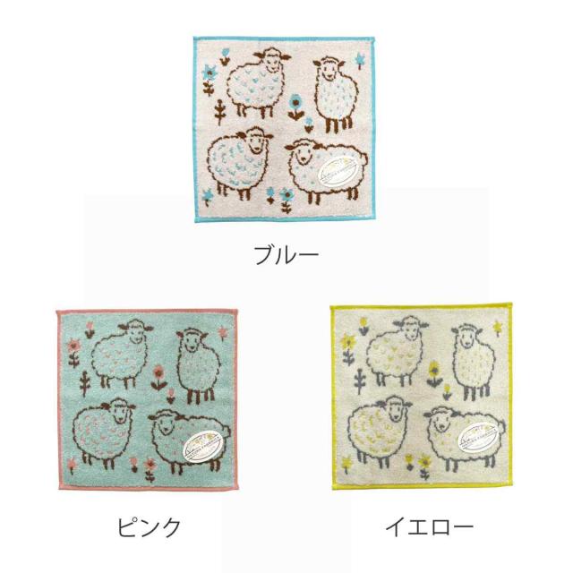 タオル ナチューラファブリカ ペコラ タオルチーフ 25×25cm ( ミニタオル たおる ハンカチ 手拭き 綿100% 吸水 ヒツジ柄 ジャガード織 手拭きタオル ハンドタオル タオルハンカチ 汗拭き ふんわり 25×25 ブルー ピンク イエロー )