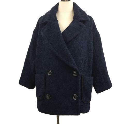 【中古】ティーケーミクスパイス タケオキクチ コート ハーフ ジャケット ダブル タック ボア 無地 長袖 F 紺