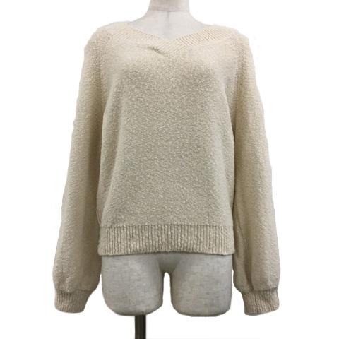 【中古】プラステ PLST セーター ニット Vネック プルオーバー リネン混 無地 長袖 M ベージュ レディース