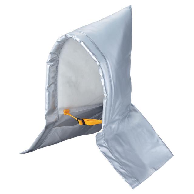 肩〜後えりまでしっかりカバーするワイド設計で、首や肩を落下物や火の粉から守ることができます。