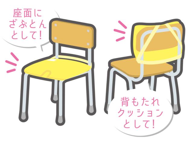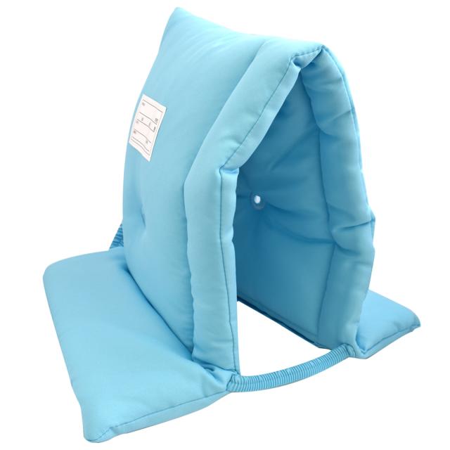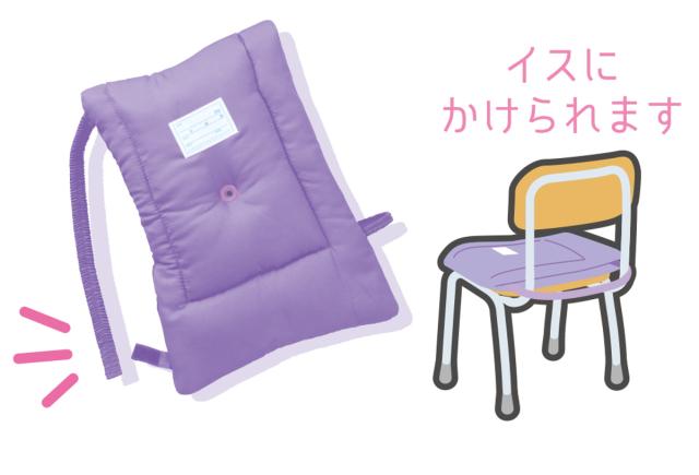 別売りの収納袋に入れると、防災頭巾のカバーとしてはもちろん、背もたれやクッションとしてお使いいただけます。学校などの限られた収納場所しかない場合に便利なアイテムです。