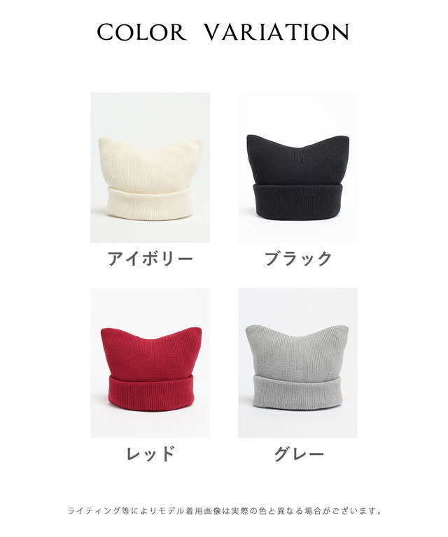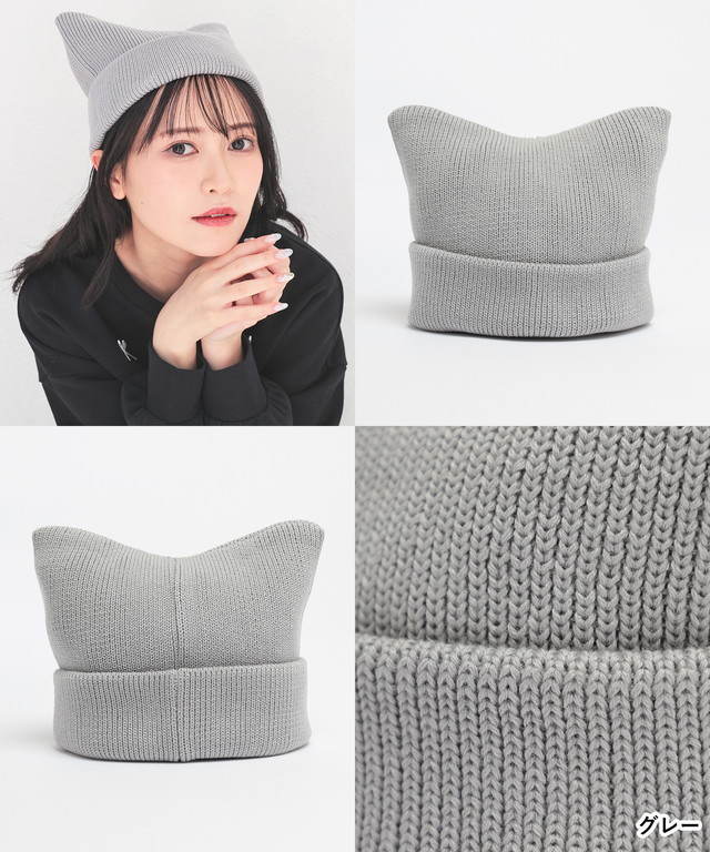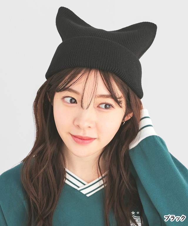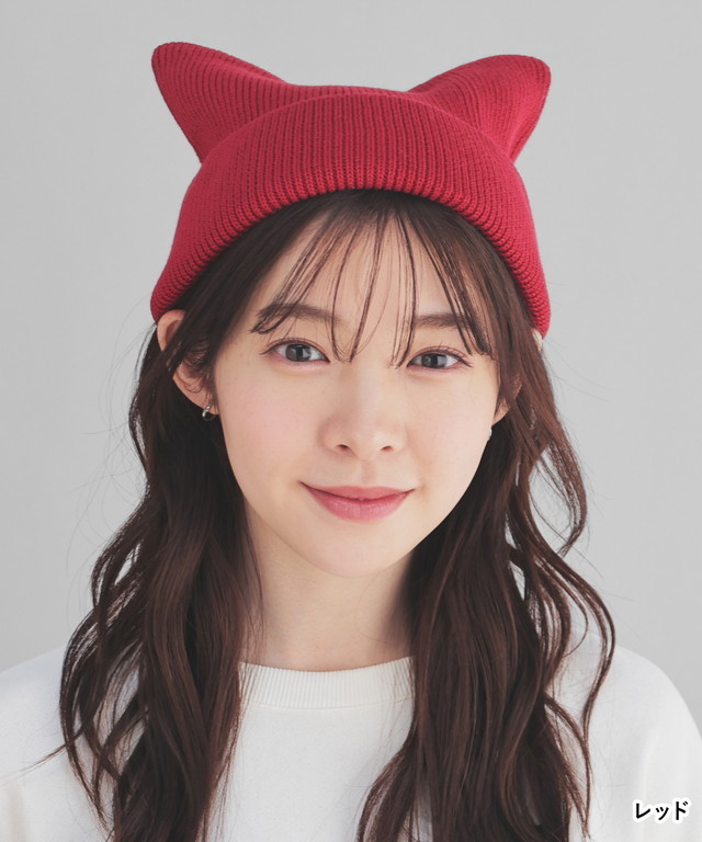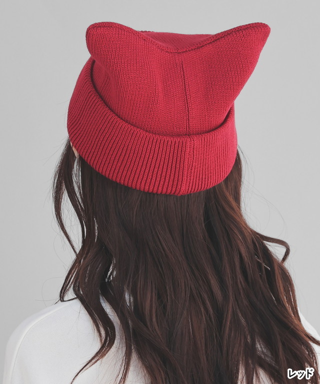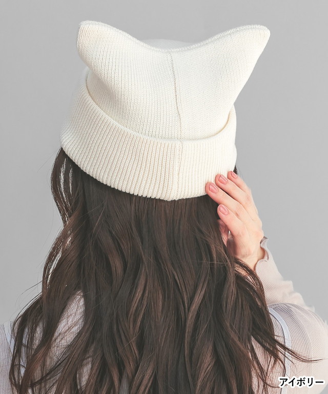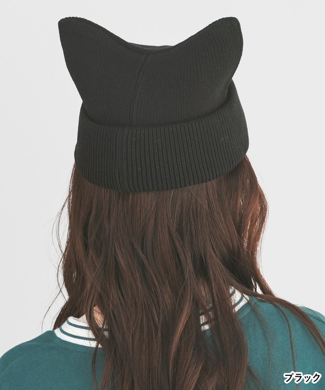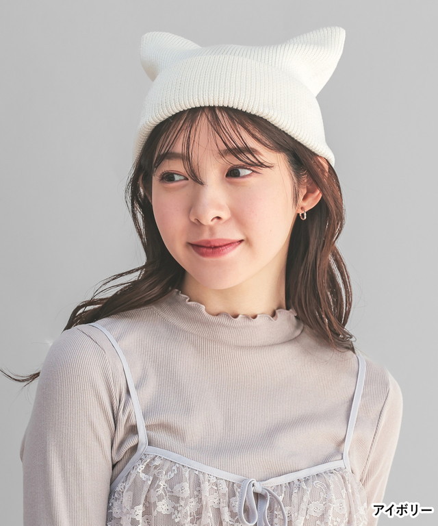 帽子 ニット帽 ネコ耳 ニット リブ 無地 ベーシックカラー アクセントカラー 手洗い 綿混 ガーリー レディース Honeys ハニーズ ネコ耳ニット帽