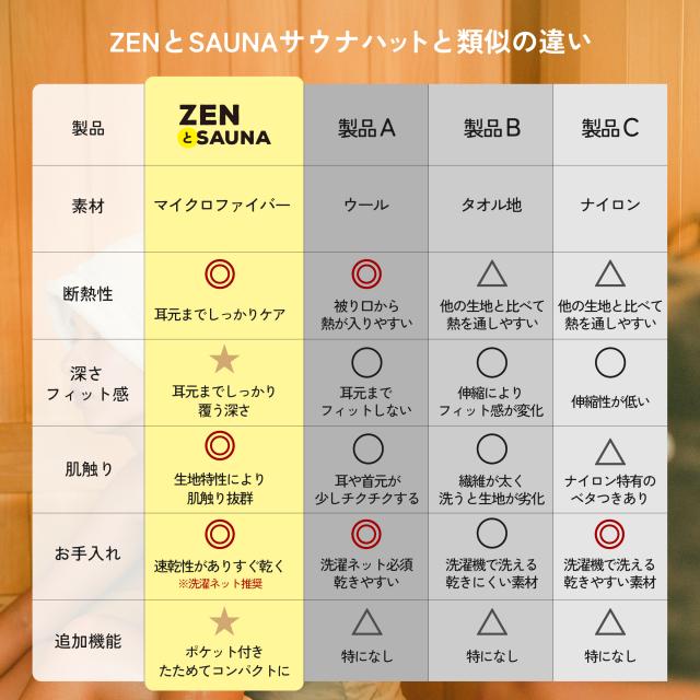 ZENとSauna サウナハット 髪の傷み防止 深くかぶれる 大きめ メンズ レディース ポケット付き 簡単洗濯 吸収