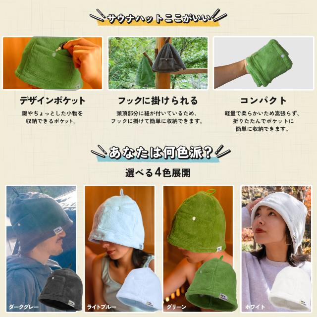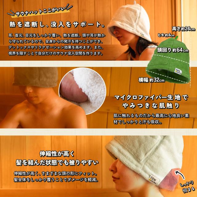 【サウナ・スパ健康アドバイザー監修】キャンプブランドZEN Campsのサウナ好きのスタッフとサウナスパアドバイザーが「ととのう」を追求して開発したサウナハットです。4種類のカラーでメンズ、レディース問わずおしゃれに使用できます。
