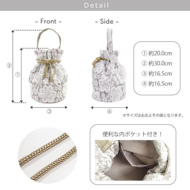 コロンとしたまるいフォルムに、繊細な花柄レースを組み合わせたお洒落な巾着。