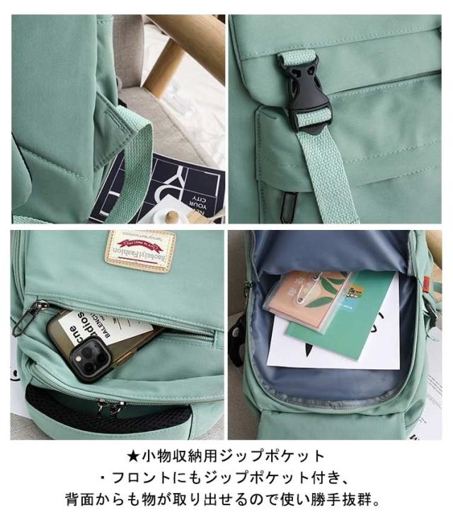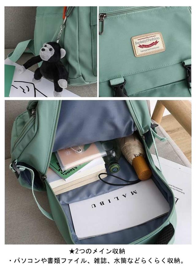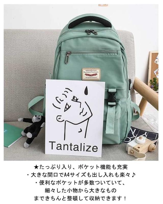 | ★たっぷり入り、ポケット機能も充実 ・大きな間口でA4サイズも出し入れも楽々♪ ・便利なポケットが多数ついていて、細々した小物から大きなものまできちんと整頓して収納できます! ★丈夫で頑丈な生地を採用 ・軽量ながらも耐久性に優れたナイロン生地を使用。 ・撥水性の高いナイロン生地で、軽い雨に濡れてサッと拭くだけでOK! ★様々なシーンで活躍 ・通学、通勤時だけではなく、旅行やアウトドア、スポーツシーンなど様々な場面でお使いいただけます。 ★2つのメイン収納 ・パソコンや書類ファイル、雑誌、水筒などらくらく収納。 ★両側にサイドポケット付き ・ペットボトルや水筒・タンブラーの収納・出し入れも楽々。 ★小物収納用ジップポケット ・フロントにもジップポケット付き、背面からも物が取り出せるので使い勝手抜群。 | |