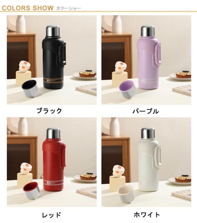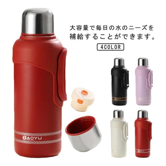 保温保冷 水筒 カップ付き タンブラー ステンレス ハンドル付き 直飲み 1000ml 1500ml 1200ml 水筒 ステンレス 水筒 おしゃれ ウォーターボトル 持ち運び 登山 運動会 自転車