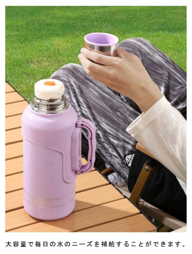 | 保冷・保温に優れたステンレスボトルです。温かい状態も冷たい状態も長時間キープすることができます。 大容量で毎日の水のニーズを補給することができます。 ホーム、オフィス、アイスドリンク、バーベキュ、運動やアウトドアなど幅広いご使用いただけます。 自分用だけでなく、プレゼントとしても人気が高い! ハンドルがついているため、持ち運びに楽々!どこでも簡単に移動できます。 | |