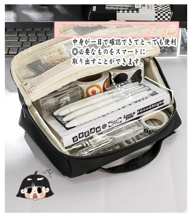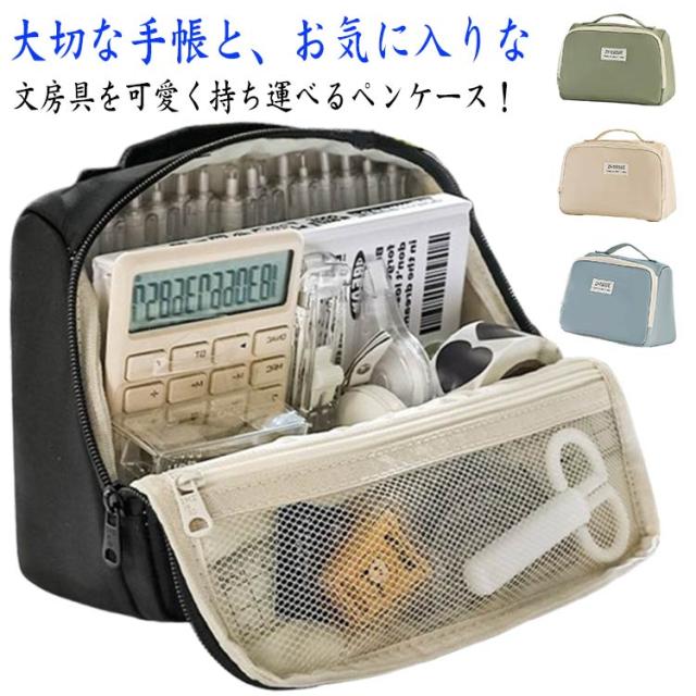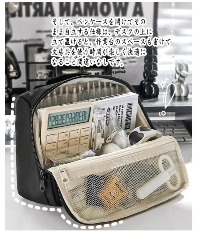 | 大切な手帳と、お気に入りな文房具を可愛く持ち運べるペンケース! 手帳が入られる大容量サイズなので、手帳を入れても折れることがなく、 家だけでなく、カフェーやオフィスなどお気に入りな場所でも楽しみます。 マッチのサイズを9cm設計されており、それもサイズ違いさまざまなポケットで文房具を一気にまとめられて整理整頓ができます。 約110本のペン類や消しゴム、付箋紙、はさみ、定規などの収納や カラーペン、シール、マスキングテープもお気に入りの手帳を無駄なくきれいに収まります。 より個性的に彩るための文房具や小物を一緒に持ち運べます。 使いやすさを追求するため、ファスナーが大きく開ける大口径! 中身が一目で確認できてとっても便利◎必要なものをスマートに取り出すことができます。 そして、ペンケースを開けてそのまま自立する仕様は、デスクの上に立て置けると、作業台のスペースも省けて 文房具を使う時間が楽しく快適になること間違いなしです。 | |