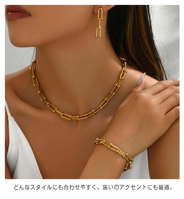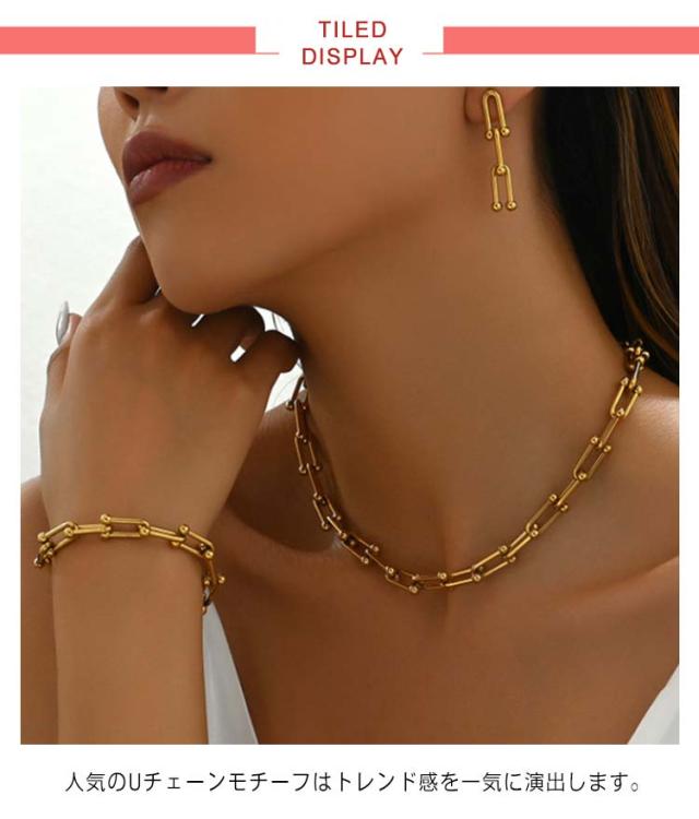 チェーン Uチェーン ピアス ネックレス アクセサリーー ブレスレット チェーン ジュエリー ゴールド 女性 シンプル