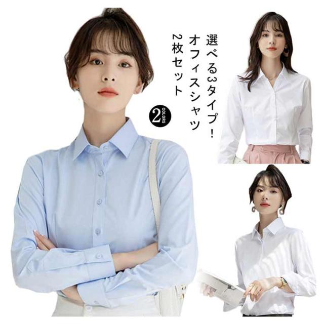オフィス 秋 2枚セット シャツ ブラウス 2枚セット スーツ フォーマル 夏 ワイシャツ インナー スーツ 白 おしゃれ 大きいサイズ 春 シャツ レディース 冬 事務服 就活 仕事 制服 オフィスカジュアル 入学式 卒園式 ブルー