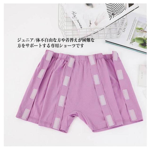 | 【女性用】 マジックテープで全開できる介護用トランクス。 ジュニア/体不自由な方や着替えが困難な方をサポートする専用ショーツです。 サイド部分が開閉できることで、寝たままのお着替えもらくちんです。 綿生地で肌触りが良く優しい着心地です。 | |