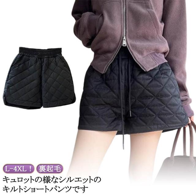 キルティング ベロア ショート パンツ ウエストゴム あったかい 蓄熱 保温 あったかい キュロット ショートパンツ ゴム シンプル カジュアル あったかい エレガント 可愛い 室内 アウトドア ゴルフ 暖かい 秋冬 防寒着 L XL 2XL 3XL 4XL 送料無料