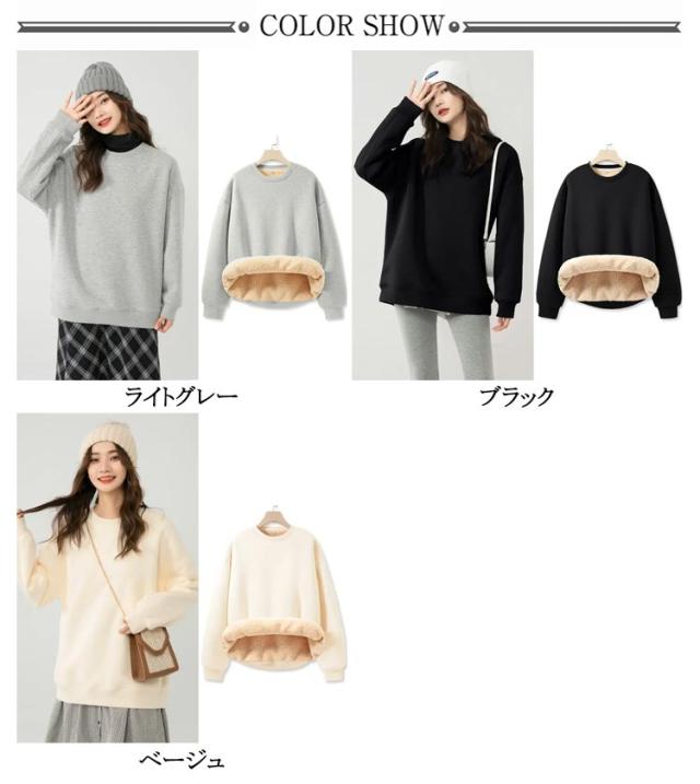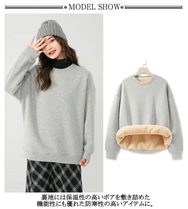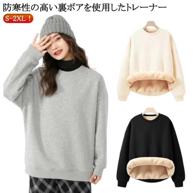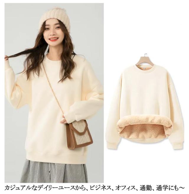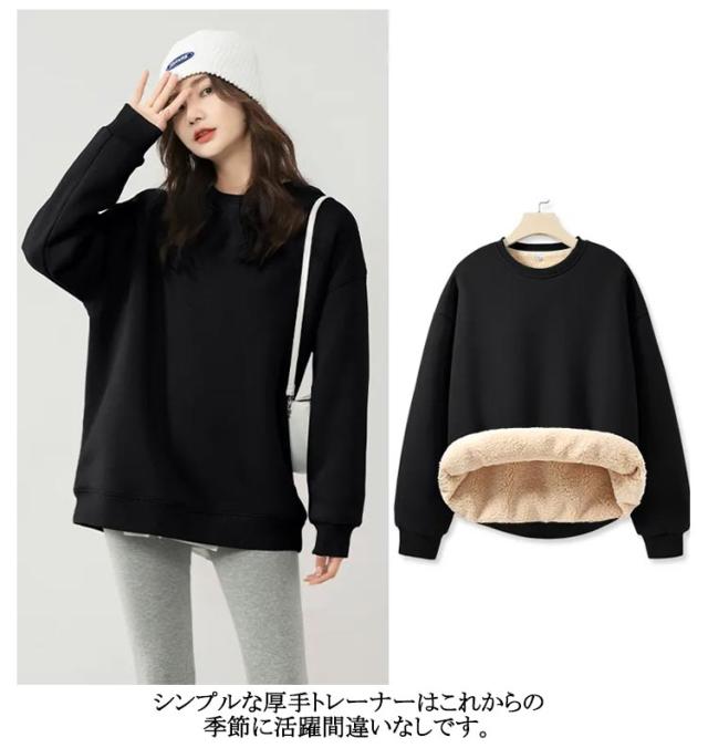 秋冬 レディース 裏起毛 厚手 暖かい ふわふわ パーカー スウェット もこもこ あったか プルオーバー 長袖 トレーナー ボア トップス シンプル アウター クルーネック 部屋着 あったか 防寒 裏ボア 無地 カジュアル ゆったり 体型カバー 大きいサイズ 春 秋 冬