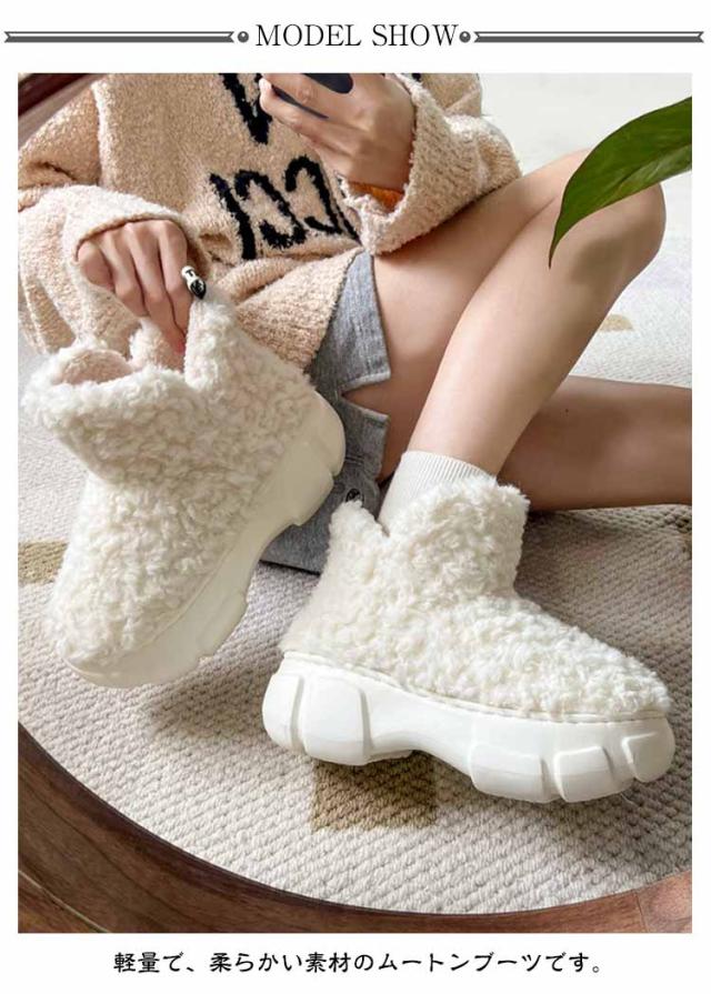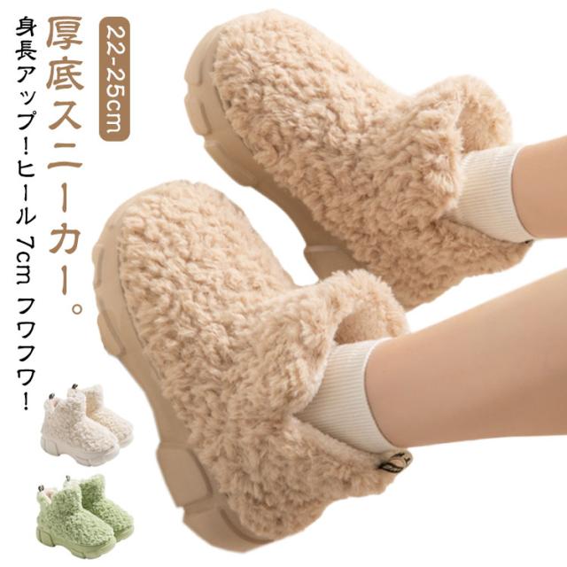 | 身長アップ!ヒール7cm フワフワ!厚底スニーカー。軽量で、柔らかい素材のムートンブーツです。 長い時間歩いても、疲れを知らずの1本に仕上げました。 ソール部分に溝があり滑りにくく、安心して履いていただけます。 中まであったかもこもこの裏起毛!寒い季節の防寒対策としても効果的。 デイリーからアフタースキーまで、広くコーディネイトが楽しめます。 カジュアル様々な服装に合わせやすい! なカラーでどんなコーディネートにも合わせやすいこの冬のマストITEMです。 | |