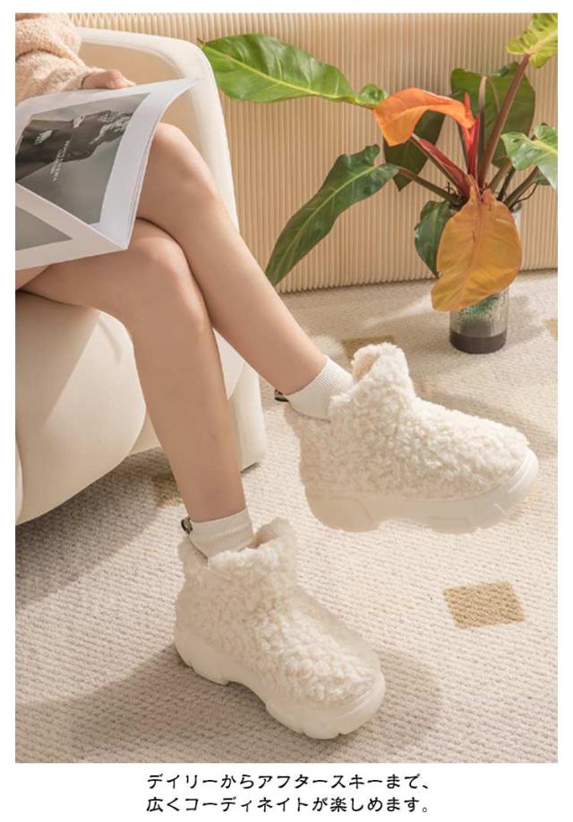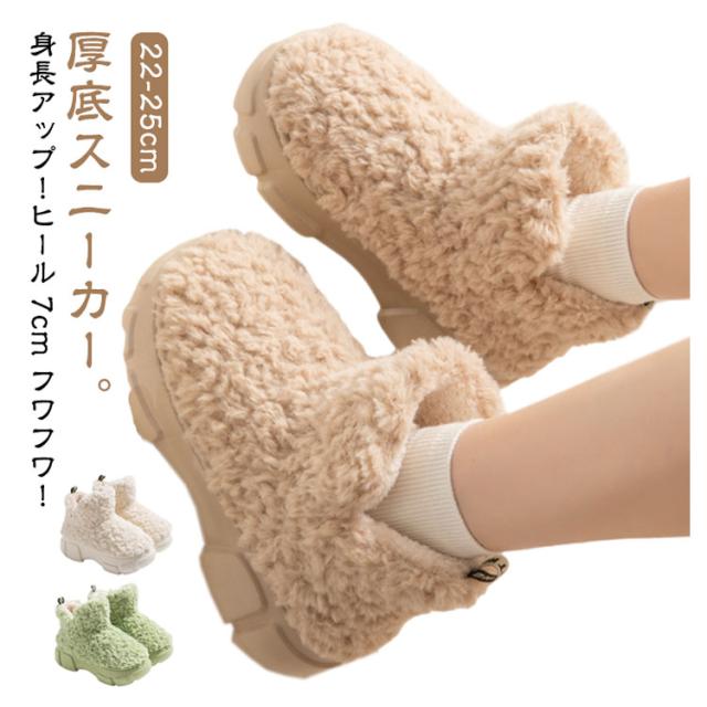 防寒靴 滑らない 厚底スニーカー 厚底 レディース 厚底スニーカー ブーツ ムートンブーツ ヒール7cm フワフワ スニーカー もこもこ ダッドスニーカー 裏起毛 カジュアルシューズ 防寒 ダウン風ブーツ 裏起毛 ショートブーツ 雪靴 綿靴 スノーブーツ 軽量 通気 快適 秋 冬