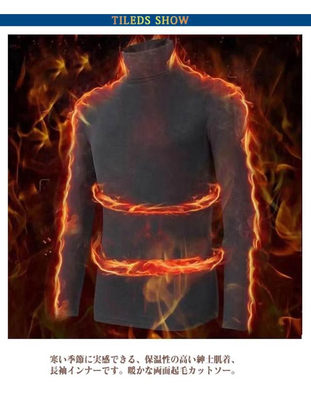 Tシャツ あったか インナーシャツ ヒートテック 両面起毛 防寒着 両面起毛 インナー 肌着 防寒 ヒートインナー あったかインナー ロンT ティーシャツ カットソー タートルネック ハイネック メンズ 秋冬 裏起毛 保温 極暖