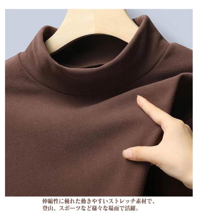| 寒い季節に実感できる、保温性の高い紳士肌着、長袖インナーです。暖かな両面起毛カットソー。 首元まで暖かいタートルネックタイプ。 お気に入りのトップスのインナーとして着ていただけ。 肌面は微起毛仕上げで、優しい肌触り。 高密度の素材が熱を逃がさず、起毛が空気を溜めるヒート構造により、暖かくご着用頂けます。 しっかり防寒したいときや屋外の仕事に最適発熱インナーシャツが登場! 伸縮性に優れた動きやすいストレッチ素材で、登山、スポーツなど様々な場面で活躍。 | |