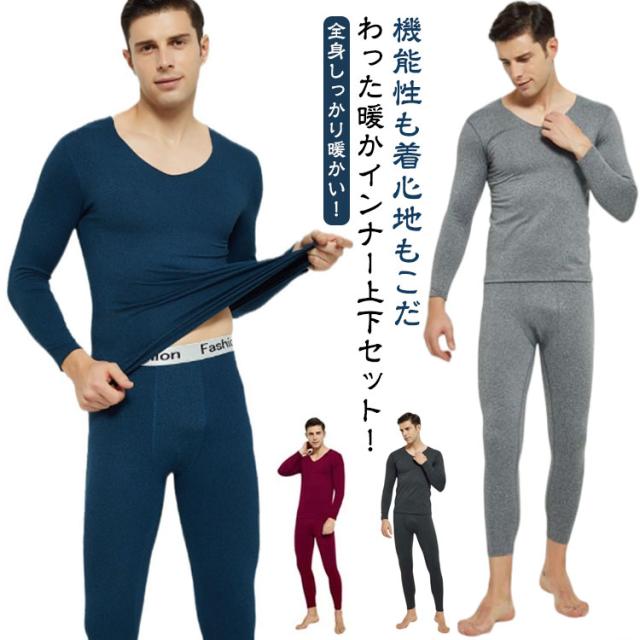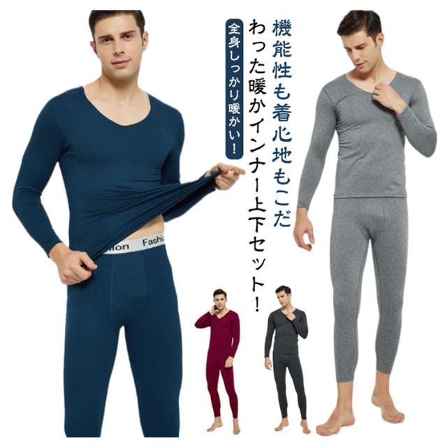 冬用 微起毛インナー 送料無料 裏起毛 Vネック 上下セット メンズ あったかインナー 発熱インナー 長袖 無地 インナー ヒートテック カットソー 保温 肌着 ロングパンツ 暖かい 防寒 ストレッチ 柔らかい 肌に優しい 送料無料 防寒着