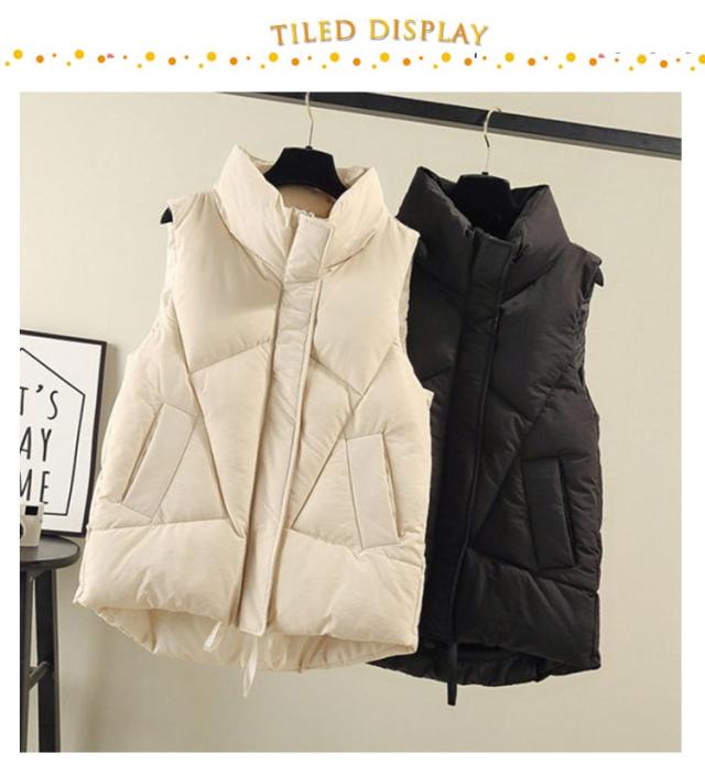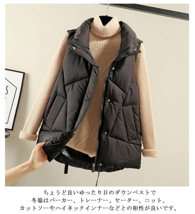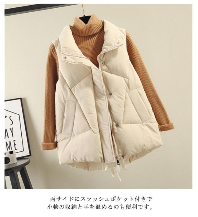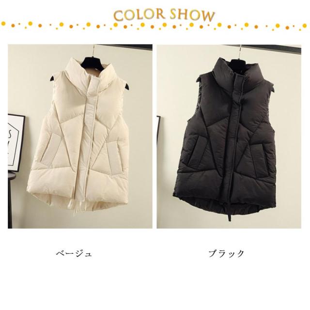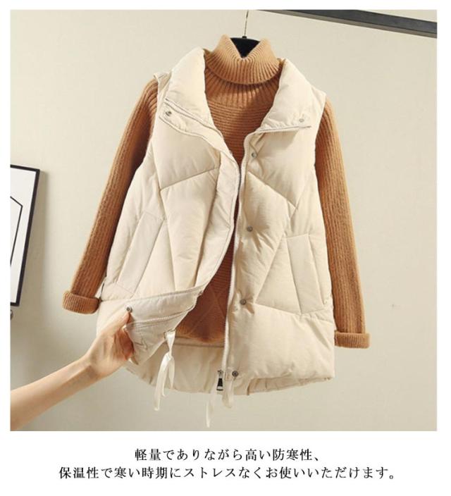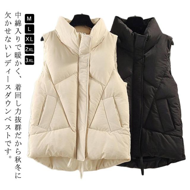 おしゃれ レディース かわいい ジャケット ダウンベスト フェイクダウン アウター 秋冬 中綿ベスト 軽量 無地 防寒 防風 保温 あったか 冬 立ち襟 襟あり ポケット付き 通学 通勤 ダウンベスト 韓国ファッション ストリート カジュアル アウトドア