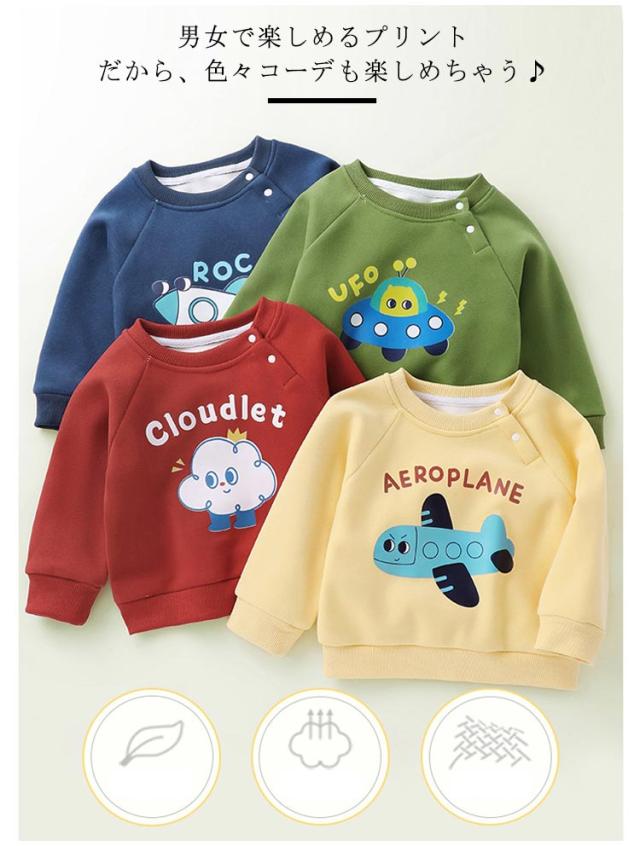 トレーナー ベビー服 裏ボア 子供服 キッズ 赤ちゃん 肩ボタン パーカー 長袖 裏ボア トップス あったか 防寒 クルーネック 可愛い 子供服 可愛い 男の子 女の子 暖かい ゆったり ギフト プレゼント 送料無料