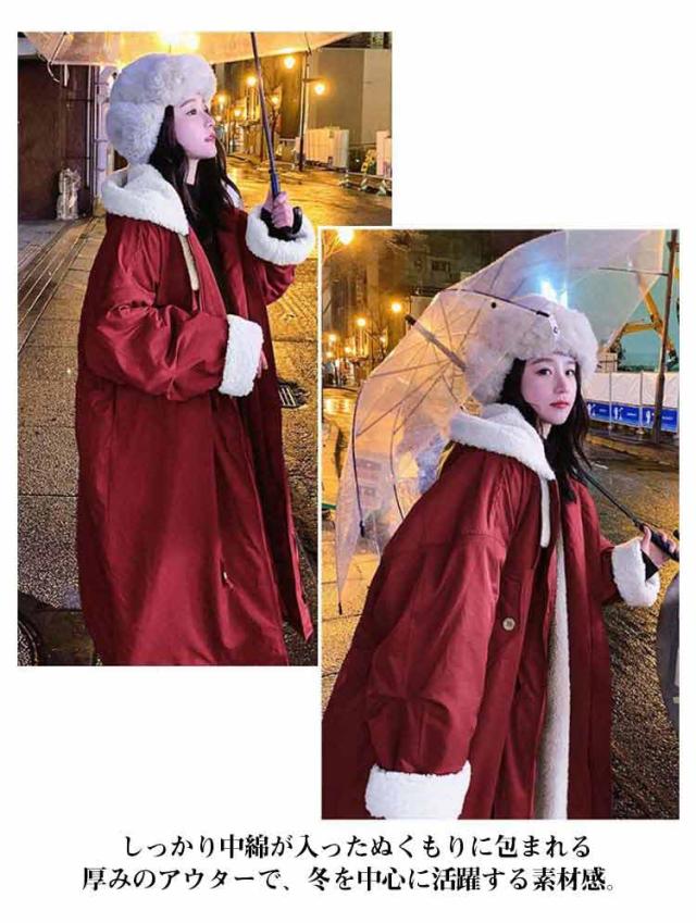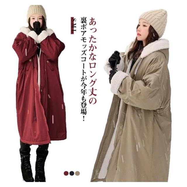 ロングジャケット 中綿コート レディース 裏ボアコート モッズコート あったか ロングコート 裏ボア 裏起毛 トレンチコート ロング丈 フード付き 長袖 ゆったり 体型カバー 厚手 アウター 防寒対策 暖かい 冬物 防寒着 大きいサイズ S M L 送料無料