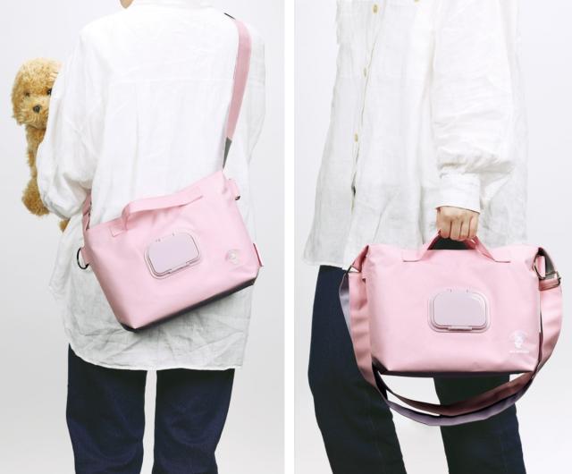 ●ショルダーにもハンディにもなる2WAYタイプのバッグなので、両手がフリーに使えてお散歩中でもワンちゃんと触れ合えます。