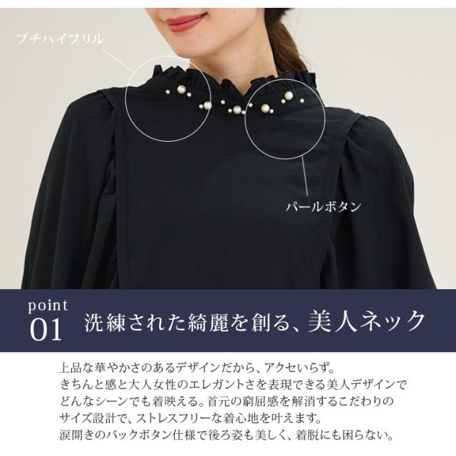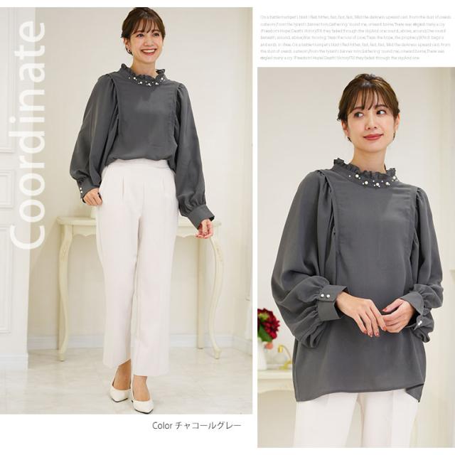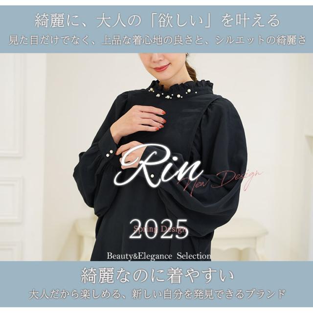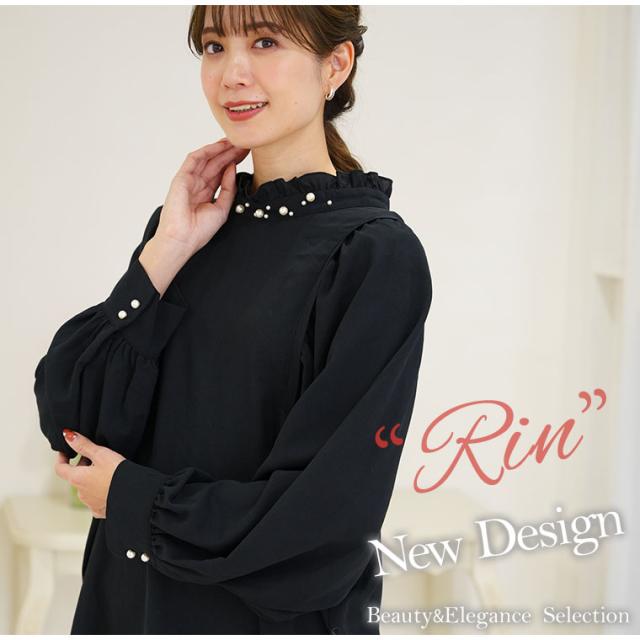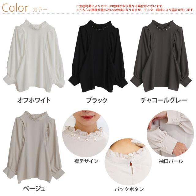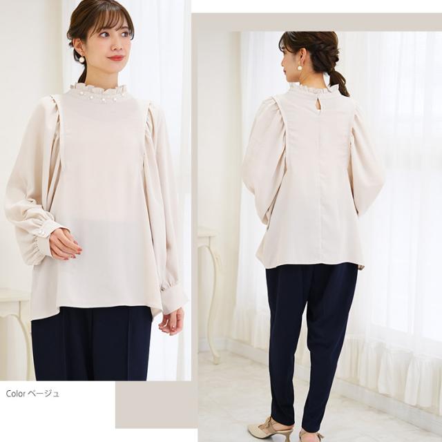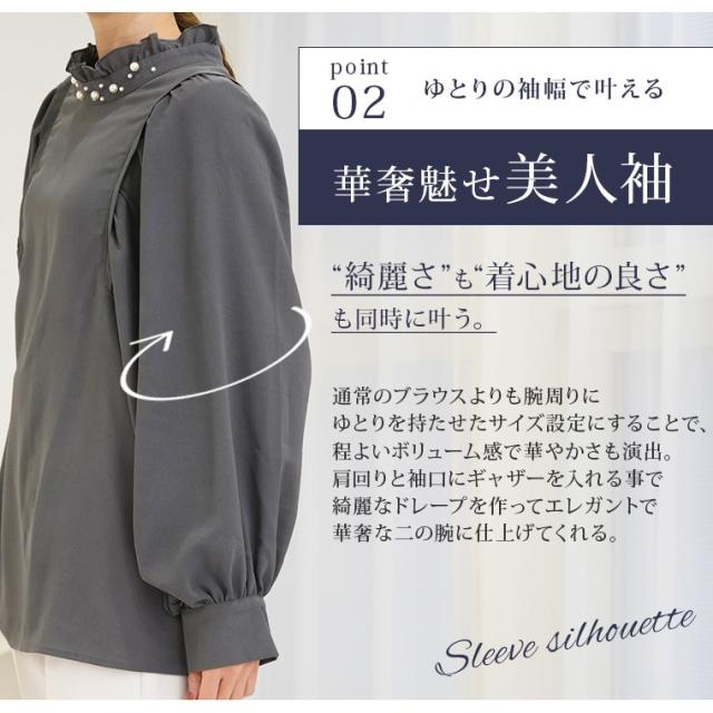 Rin エレガントに華やぐ ボリューム袖 パール付き プチハイ ブラウス