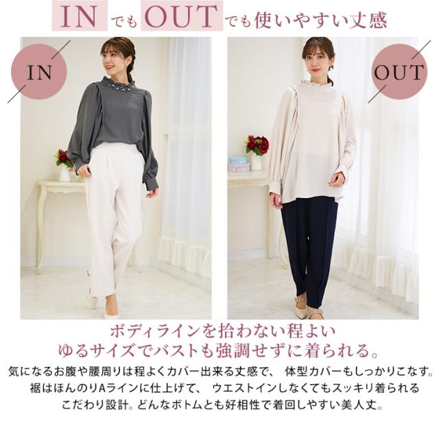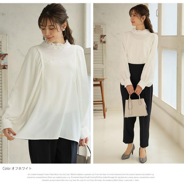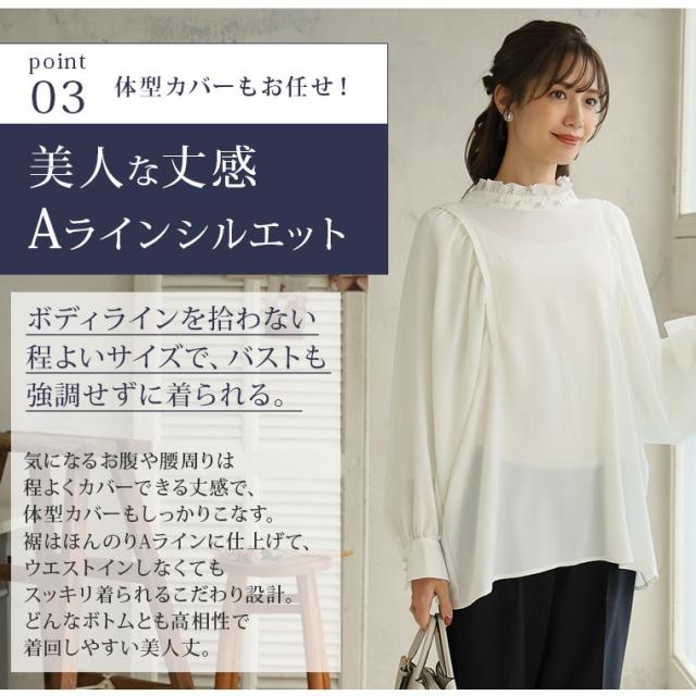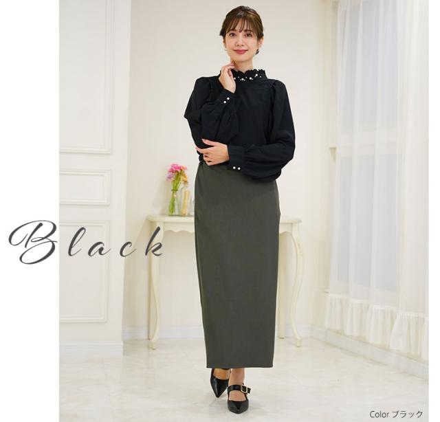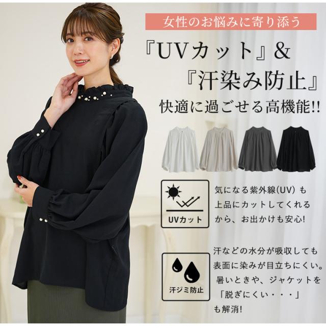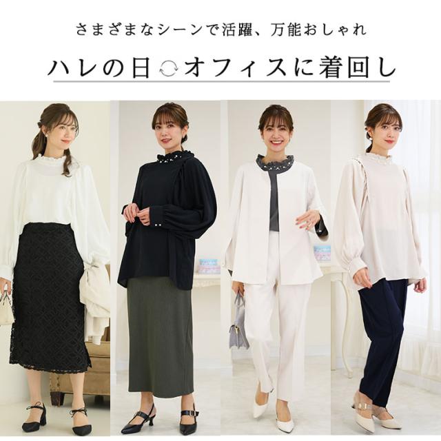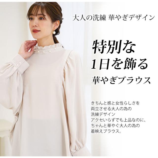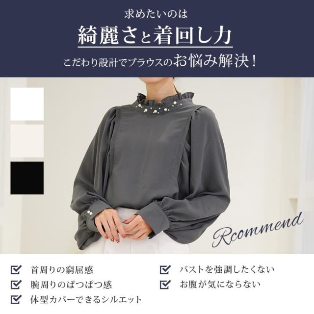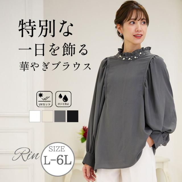 新作 大きいサイズ レディース ブラウス | Rin エレガントに華やぐ ボリューム袖 パール付き プチハイ ブラウス [861617] LL 3L 4L 5L 6L