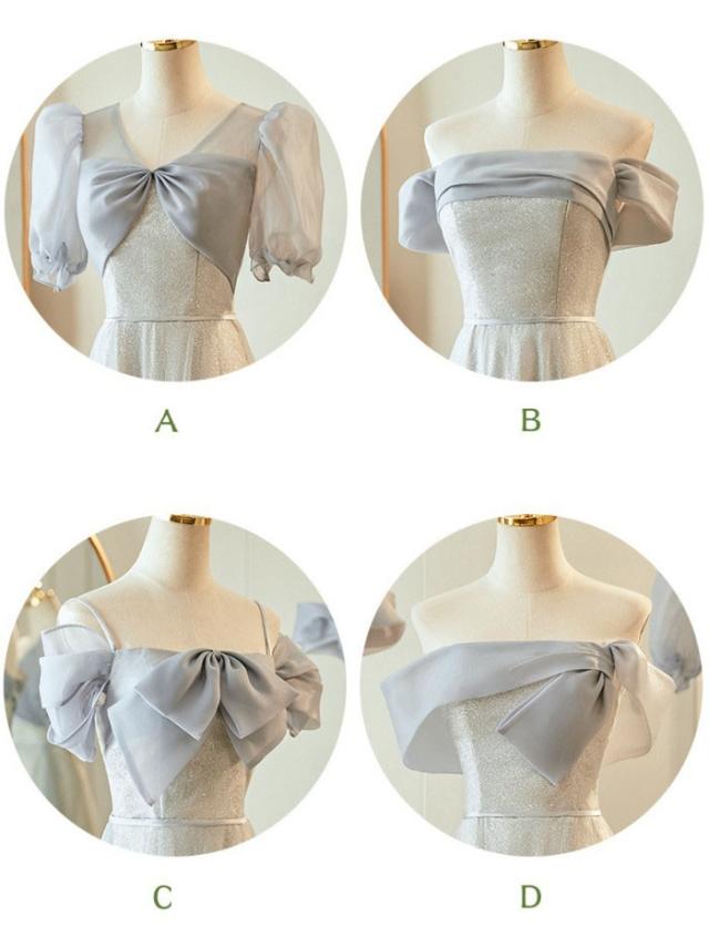 ブライズメイド ドレス ロングドレス 演奏会 ピアノ発表会 グレー 灰色 半袖 ノースリーブ 袖なし 編み上げ ショルダーネック サテン ワンピース レディース 春秋 きれいめ 大きいサイズ 小さいサイズ 結婚式 母親