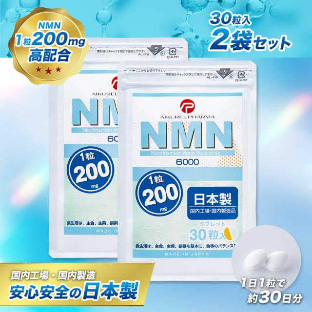 【レビュー投稿で+10%ポイント還元】30粒入 2袋セット NMN タブレット サプリメント 6,000mg (1粒に200mg) 日本製 β-ニコチンアミドモノヌクレオチド 高純度99.9% GMP認定工場 二酸化チタン(着色料)不使用 アイクレルファーマ