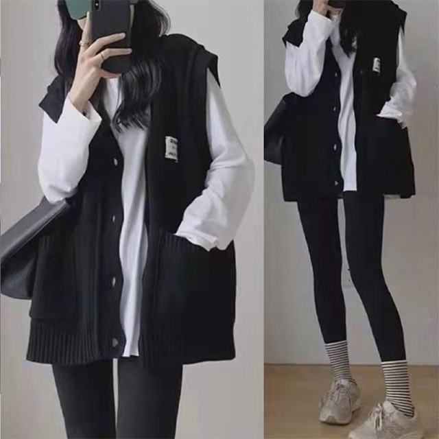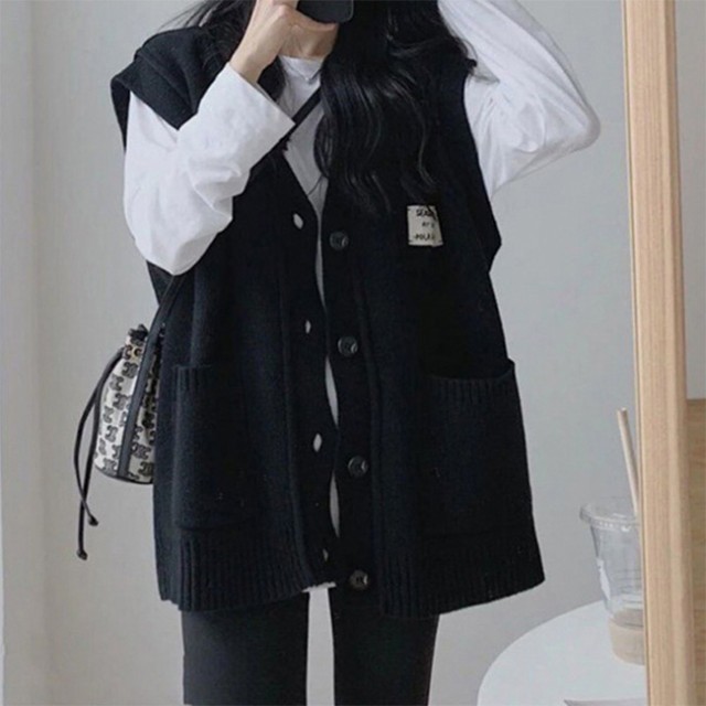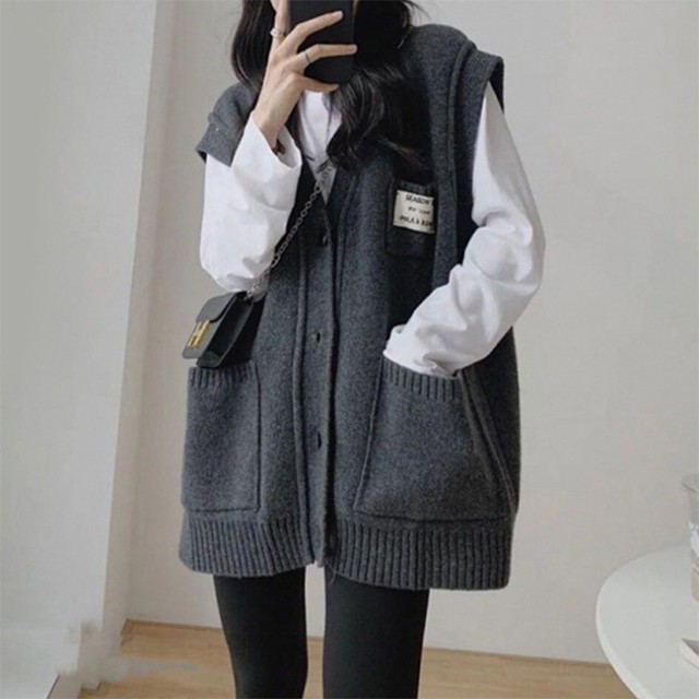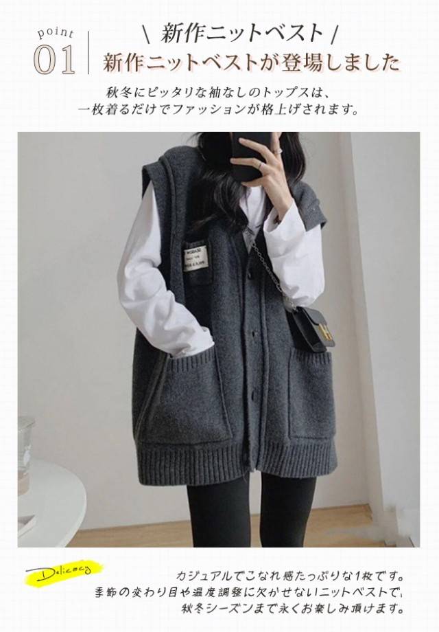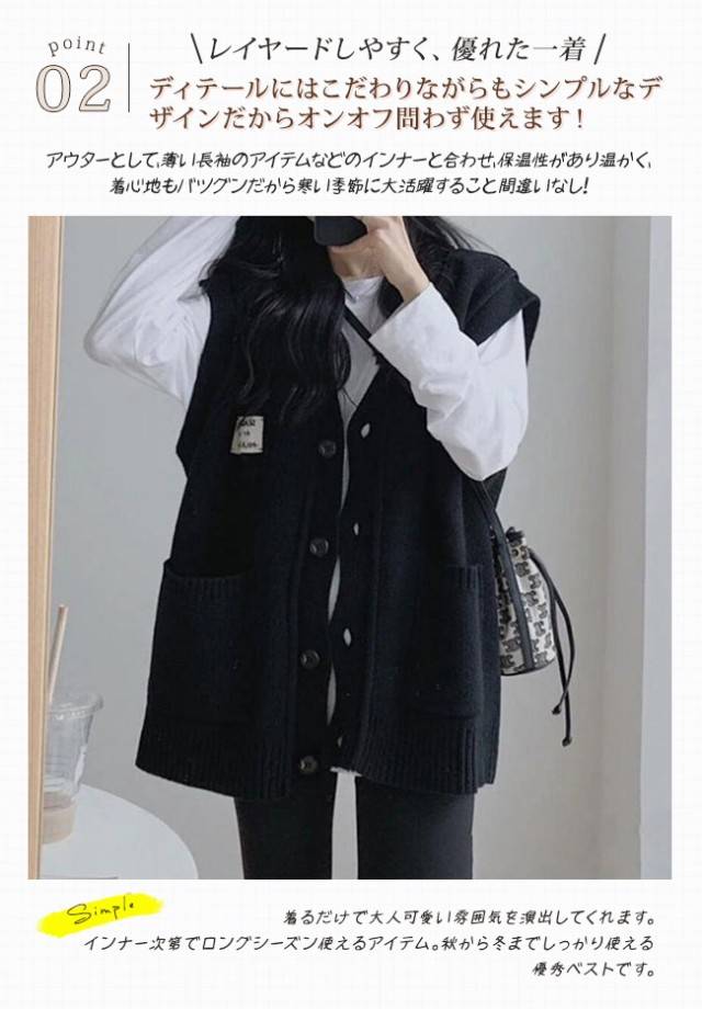 ニットベスト レディース 秋冬 前開き Vネック 無地 厚手 セーターベスト 前ボタン 暖かい ポケット付き トップス カジュアル 普段着 アウトドア