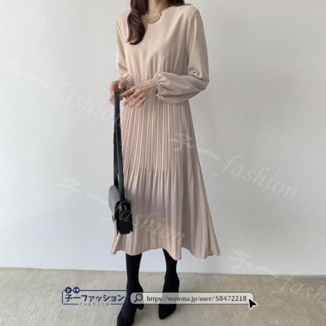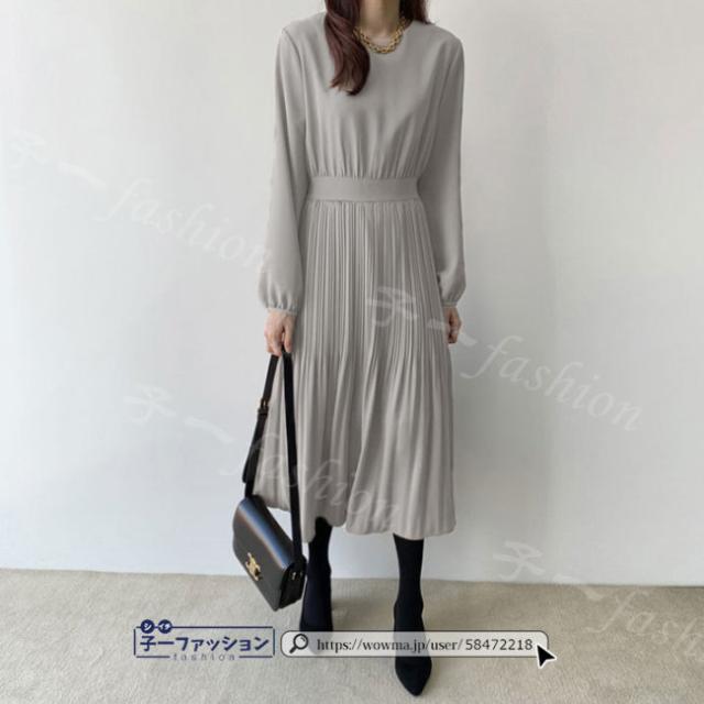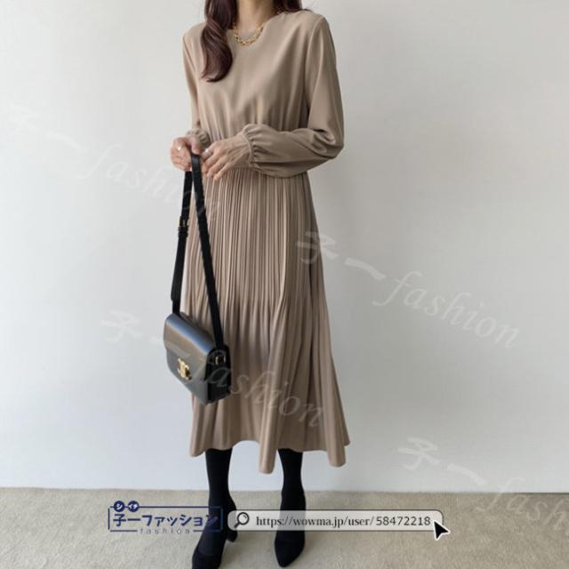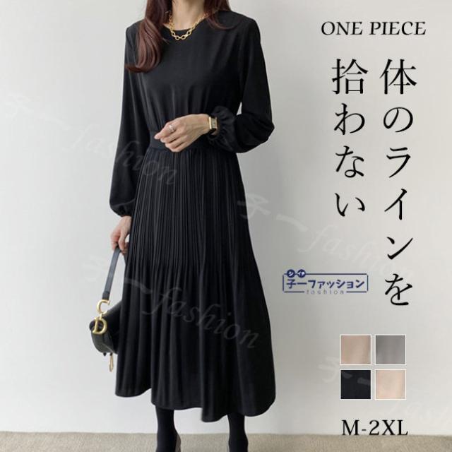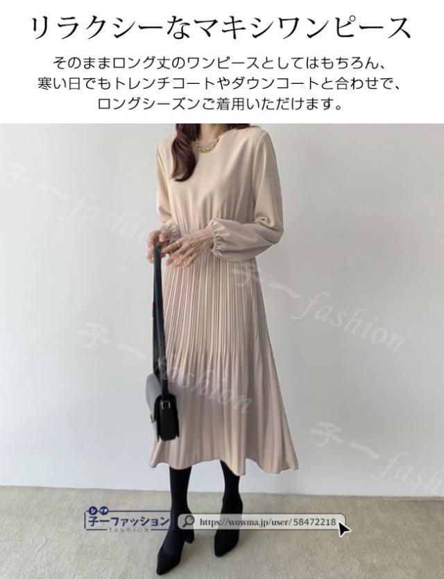 ワンピース ロングワンピース 長袖 レディース プリーツワンピース 冬新作 新作 ロング丈 マキシワンピース きれいめ リブ 着痩せ マタニティ ゆったり ワンマイルウェア Aライン Iライン 可愛い 秋冬