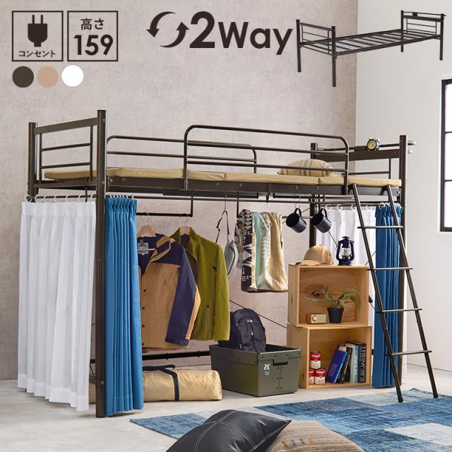 カーテンレール付き ロフトベッド ミドルタイプ 【送料無料】 アイアン パイプベッド スチールベッド ベッド下 収納スペース 一人暮らし おしゃれ ベッドフレームのみ 大人用 シングル