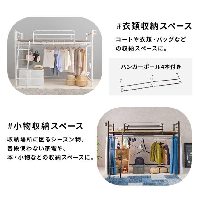 【キーワード】 一人暮らし 狭い部屋 ロフトベッド ロータイプ お洒落 おすすめ ホワイト 白 アイアンベッド シングル ベッドフレームのみ 子供 大人 安い 頑丈 激安 格安 人気ランキング カーテンレール付き パイプベッド ハイタイプ ミドル ベッド下 収納スペース 秘密基地 宮棚付き ハンガー