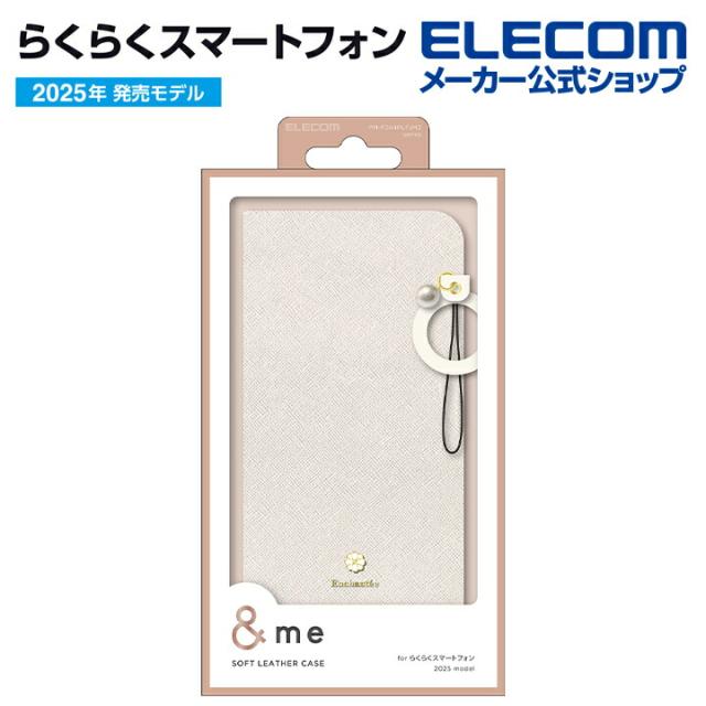 【在庫処分・お買い得!】 エレコム らくらくスマートフォン 用 &me ソフトレザーケース 磁石付 リング付 F-53E ソフトレザー ケース カバー 手帳型 Enchante'e ホワイト ┃PM-F244PLFJM2WH