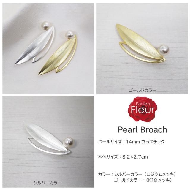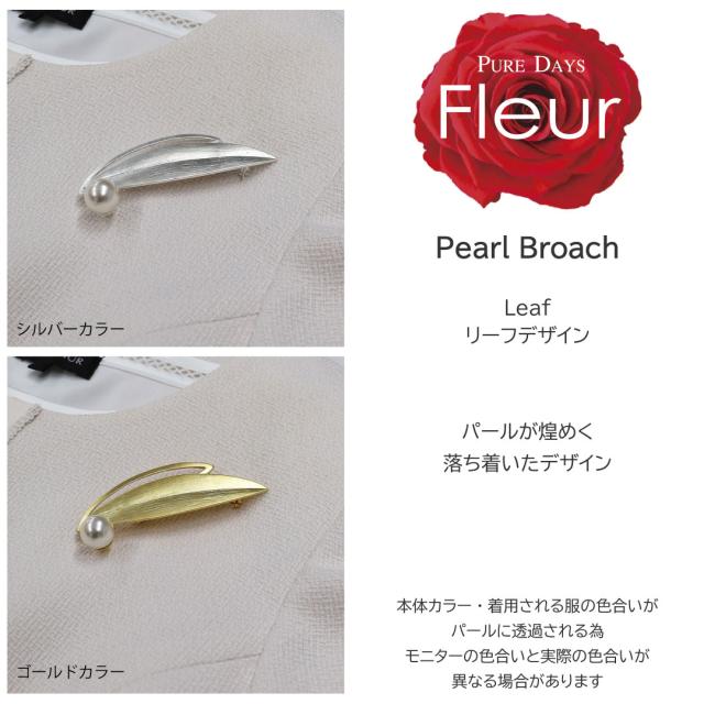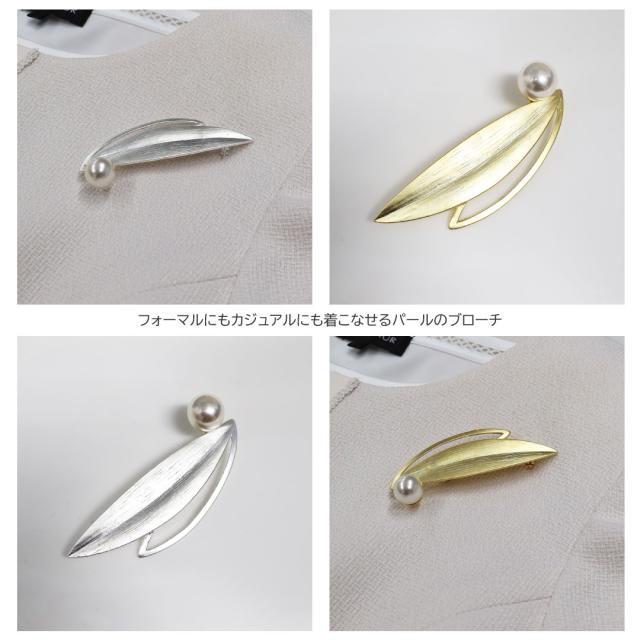 パールブローチ 真珠ブローチ 真珠 パール ピン ブローチ リーフ 葉 ホワイト 白 シルバー ゴールド 結婚式 入学式 卒業式 フォーマル