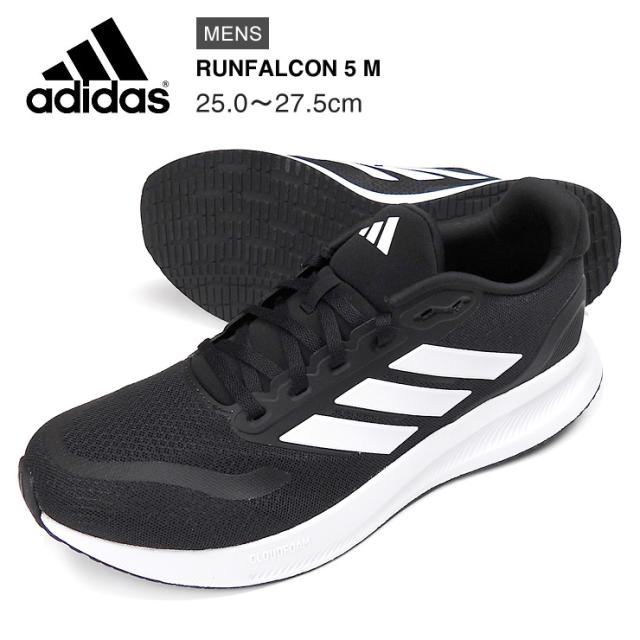 【箱アウトレット】adidas RUNFALCON 5 M ローカット スニーカー シューズ メンズ 25 25.5 26 26.5 27 27.5 アディダス ランファルコン 5 IH7758 男性 紳士 靴 くつ 紐 レースアップ スリーストライプス 3本ライン 黒 ブラック sh2046