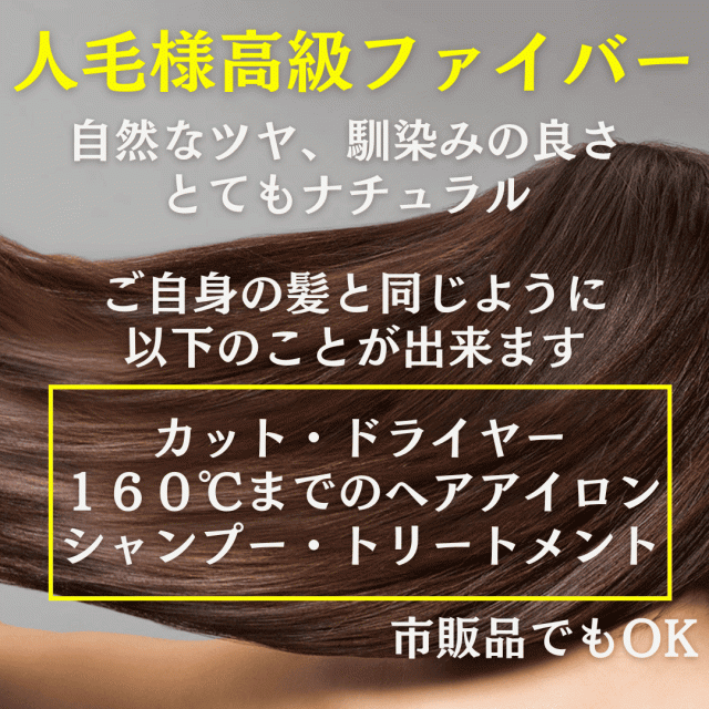 日本人に近い髪質の少し細く柔らかめの髪質の人毛様耐熱ファイバー 自然で滑らかな髪の質なので、手ぐしで形の調整が可能 |